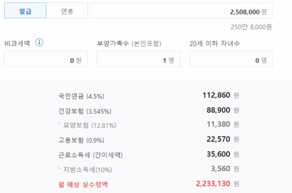 2) 월급 실수령액 계산기