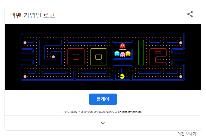팩맨을 조작하며 유령을 피해 쿠키를 다 먹게 되면 이기는 게임 입니다. 구글의 숨겨진 게임 중 하나로, 구글 검색에서 팩맨을 검색 하시면 게임을 플레이 하실 수 있습니다.