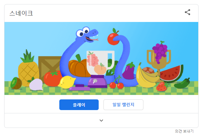 사과를 먹으면 지렁이가 길어지고, 누가 사과를 많이 먹었는지 기록을 세우는 게임입니다. 구글 검색창에서 스네이크 플레이하기를 검색하시면 플레이 하실 수 있습니다.
