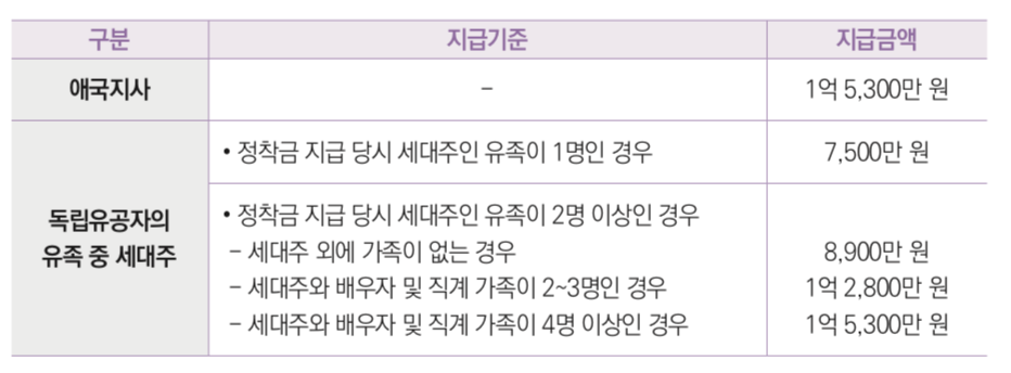 * 유족 : 배우자, 자녀, 손자녀, 며느리(1945년 8월 14일 이전 구호적에 기재된 자)