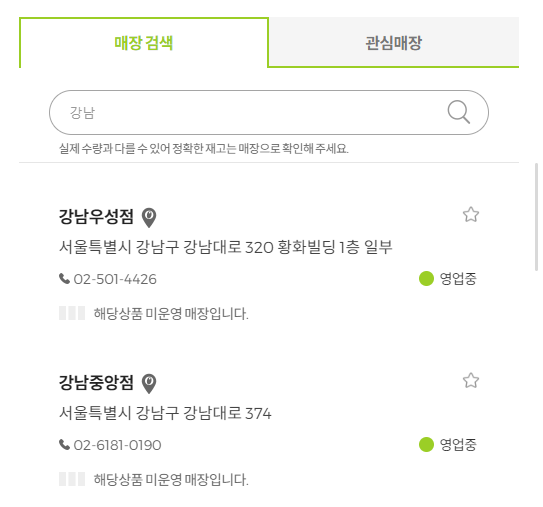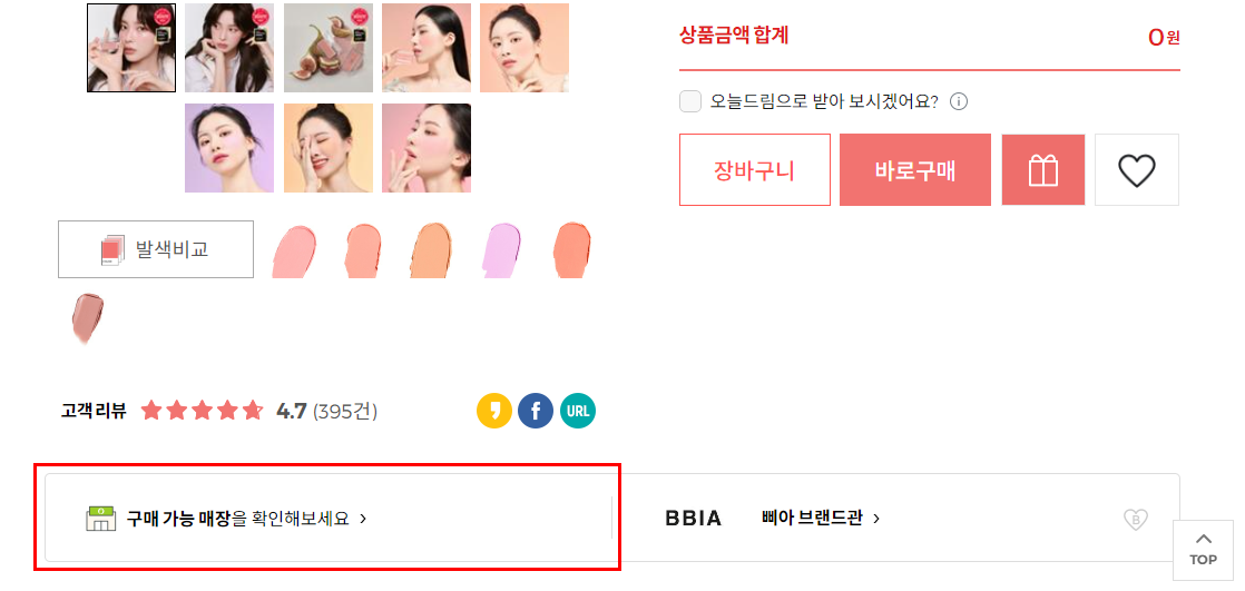 3) 상품 상세페이지 좌측 하단 구매 가능 매장을 확인해보세요를 클릭합니다.