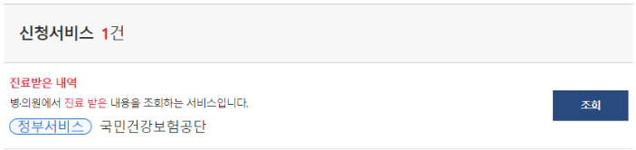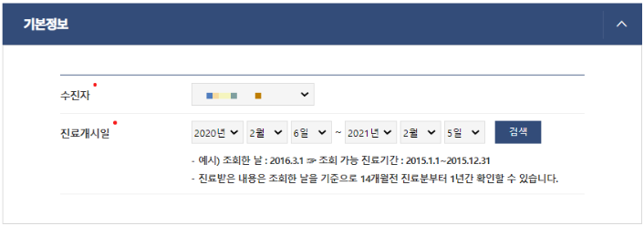2) 검색바에서 진료받은내역 검색 후 조회하기 버튼 클릭