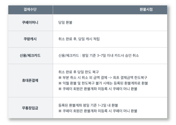 • 쿠페이머니: 당일 환불