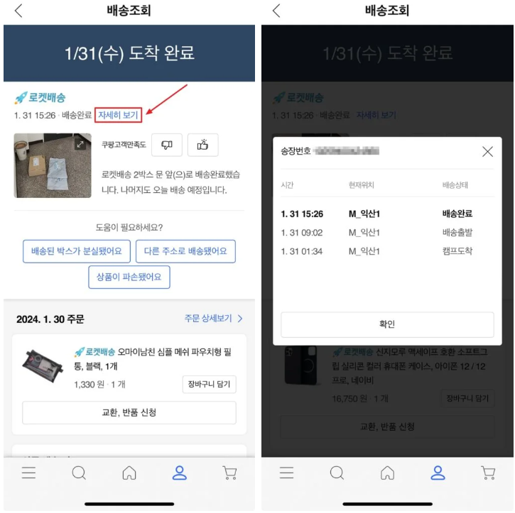 쿠팡 로켓배송 실시간 위치 조회 방법 1분 컷!